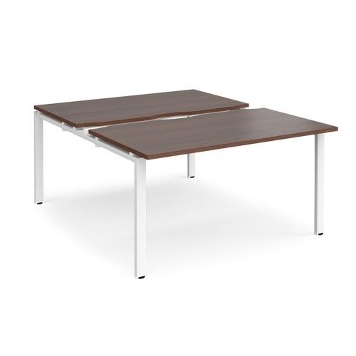 Adapt sliding top back to back desks 1400mm x 1600mm - white frame, walnut top