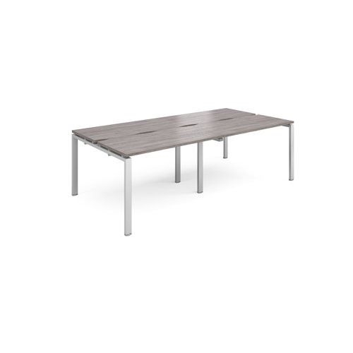 Adapt sliding top double back to back desks 2400mm x 1200mm - silver frame, grey oak top