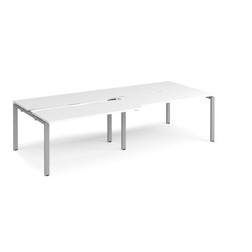 Adapt sliding top double back to back desks 2800mm x 1200mm - silver frame, white top