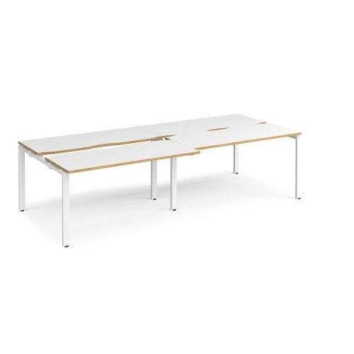 Adapt sliding top double back to back desks 2800mm x 1200mm - white frame, white top with oak edging