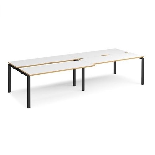 Adapt sliding top double back to back desks 3200mm x 1200mm - black frame, white top with oak edging