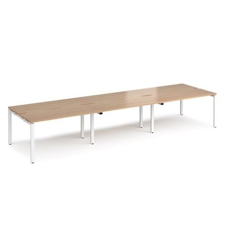 Adapt sliding top triple back to back desks 4200mm x 1200mm - white frame, beech top
