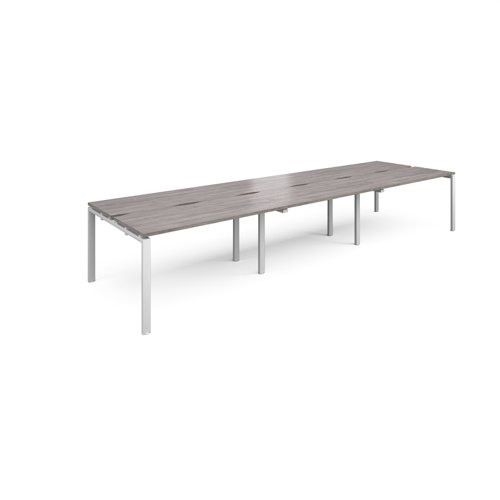 Adapt sliding top triple back to back desks 4200mm x 1200mm - white frame, grey oak top