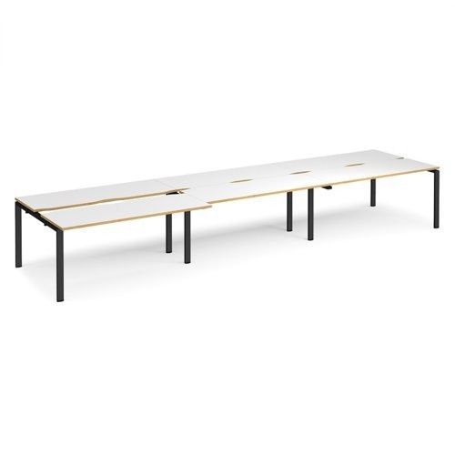 Adapt sliding top triple back to back desks 4800mm x 1200mm - black frame, white top with oak edging