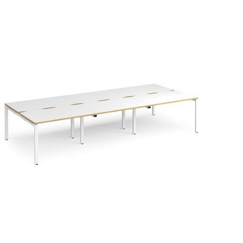 Adapt triple back to back desks 3600mm x 1600mm - white frame, white top with oak edging