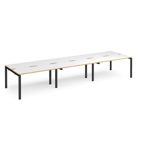 Adapt triple back to back desks 4200mm x 1200mm - black frame, white top with oak edging
