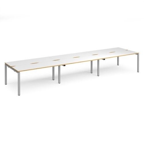 Adapt triple back to back desks 4800mm x 1200mm - silver frame, white top with oak edging