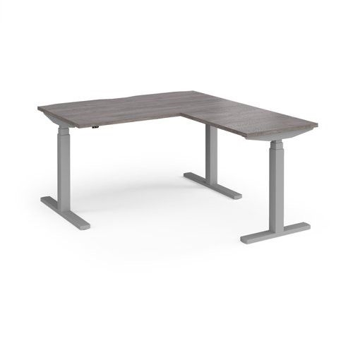 Elev8 Touch sit-stand desk 1400mm x 800mm with 800mm return desk - silver frame, grey oak top