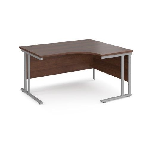 Maestro 25 right hand ergonomic desk 1400mm wide - silver cantilever leg frame, walnut top