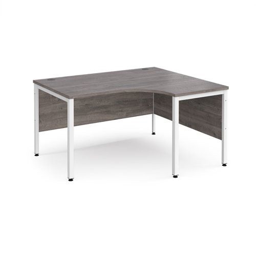 Maestro 25 right hand ergonomic desk 1400mm wide - white bench leg frame, grey oak top
