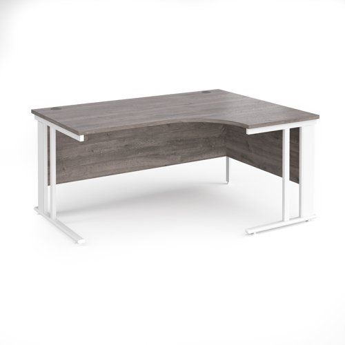 Maestro 25 right hand ergonomic desk 1600mm wide - white cable managed leg frame, grey oak top