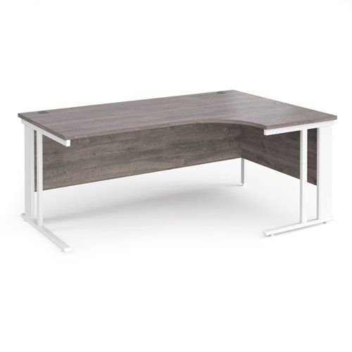 Maestro 25 right hand ergonomic desk 1800mm wide - white cable managed leg frame, grey oak top