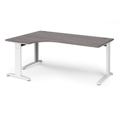 TR10 deluxe left hand ergonomic desk 1800mm - white frame, grey oak top