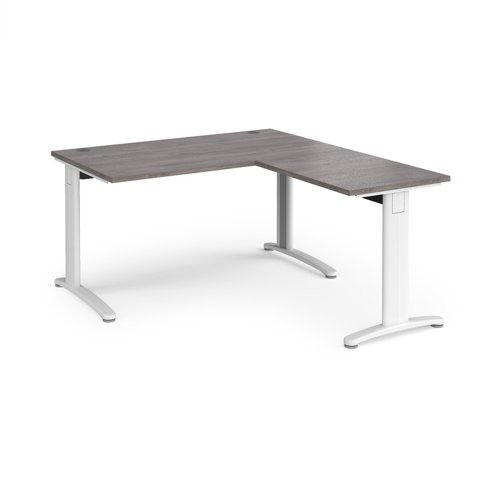 TR10 desk 1400mm x 800mm with 800mm return desk - white frame, grey oak top