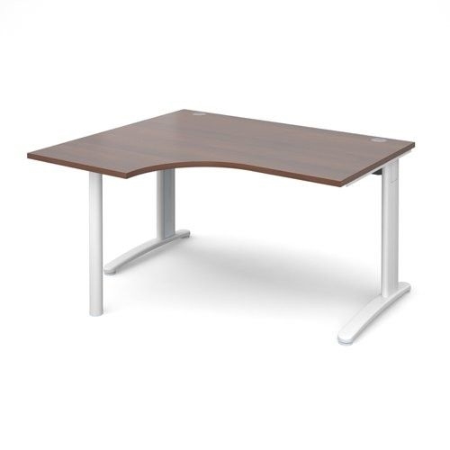 TR10 left hand ergonomic desk 1400mm - white frame, walnut top