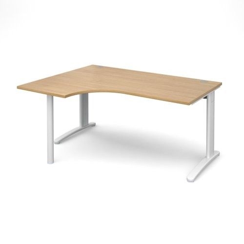 TR10 left hand ergonomic desk 1600mm - white frame, oak top